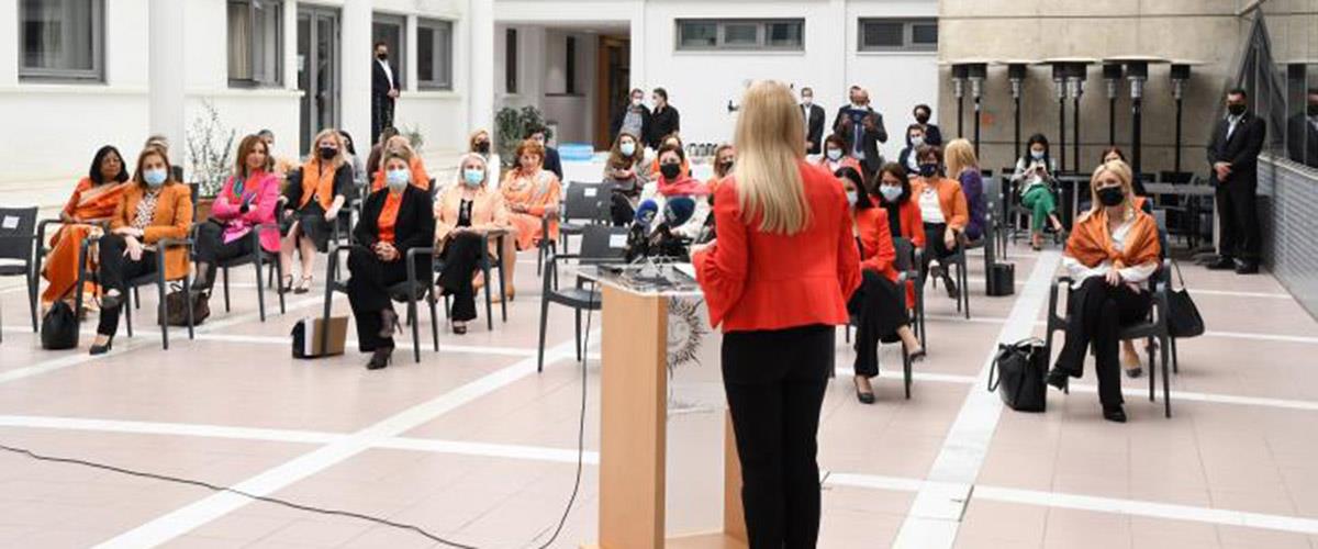 Η κ. Δημητρίου τόνισε την ανάγκη για εξάλειψη κάθε είδους βίας ενάντια στις γυναίκες και σημείωσε την αυξητική τάση που παρατηρείται, σε παγκόσμιο επίπεδο, σε τέτοια περιστατικά, ιδιαιτέρως μετά το ξέσπασμα της πανδημίας COVID-19.