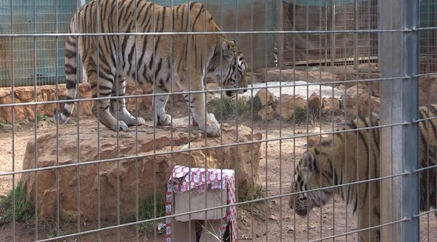 Δώρα μοίρασαν σήμερα στα ζώα οι υπεύθυνοι του ζωολογικού κήπου της Πέγειας "Pafos Zoo", διανέμοντας πολύχρωμα πακέτα που περιείχαν κομμάτια κρέατος και διάφορα παιχνίδια. Σύμφωνα με τον κτηνίατρο του "Pafos Zoo" Ιούλιο Χριστοφόρου πρόκειται για μια τακτική, η οποία εφαρμόζεται σε πολλούς ζωολογικούς κήπους ανά τον κόσμο, προς ενίσχυση της ψυχολογίας των ζώων.