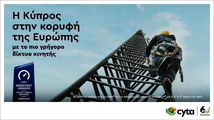 Η Cyta, εδώ και 60 χρόνια, δημιουργεί το ψηφιακό μέλλον του τόπου μας και επενδύει στην εξέλιξη της επικοινωνίας. Η σκληρή δουλειά και η αφοσίωσή της στην αριστεία την έχουν οδηγήσει, σήμερα, σε μια σημαντική διάκριση. Με βάση τις μετρήσεις της Ookla® και τα δεδομένα του Speedtest Intelligence® για το 2ο και το 3ο τρίμηνο του 2021, το δίκτυο κινητής της Cyta είναι το πιο γρήγορο στην Ευρώπη.