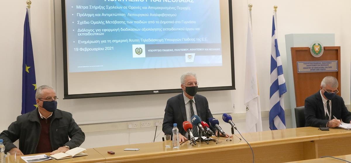 Ο υπουργός Παιδείας Πρόδρομος Προδρόμου παρουσίασε την Παρασκευή σε συνέντευξη Τύπου τα μέτρα στήριξης σχολείων ορεινών και απομακρυσμένων περιοχών, τα μέτρα για πρόληψη και αντιμετώπιση του λειτουργικού αναλφαβητισμού και τα μέτρα για την ομαλή μετάβαση από το Δημοτικό στο Γυμνάσιο.