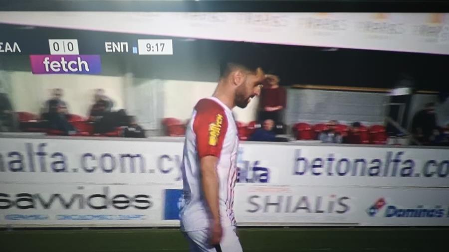 Εγκληματικό φάουλ, έκανε ο ποδοσφαιριστής των ερυθρολεύκων Νίκο Βαρέλα, στον Δημήτρη Θεοδώρου, στο 9ο λεπτό του αγώνα μεταξύ Νέας Σαλαμίνας και Ένωσης, στο στάδιο Αμμόχωστος.