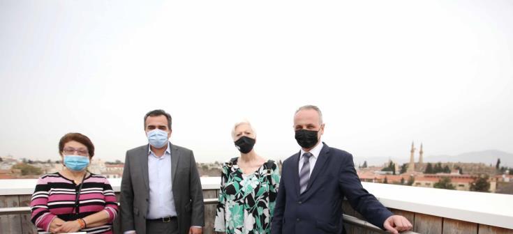 Η κ. Θεοχάρους ξεναγήθηκε από τον κ. Γιωρκάτζη στην οροφή του Δημαρχείου κάτι που έδωσε την ευκαιρία, μέσα από μια οπτική περιήγηση «να δούμε την πανέμορφη πόλη μας, τη Λευκωσία που διατηρεί μνήμες αιώνων» είπε, τέλος, η Πρόεδρος της Αλληλεγγύης.