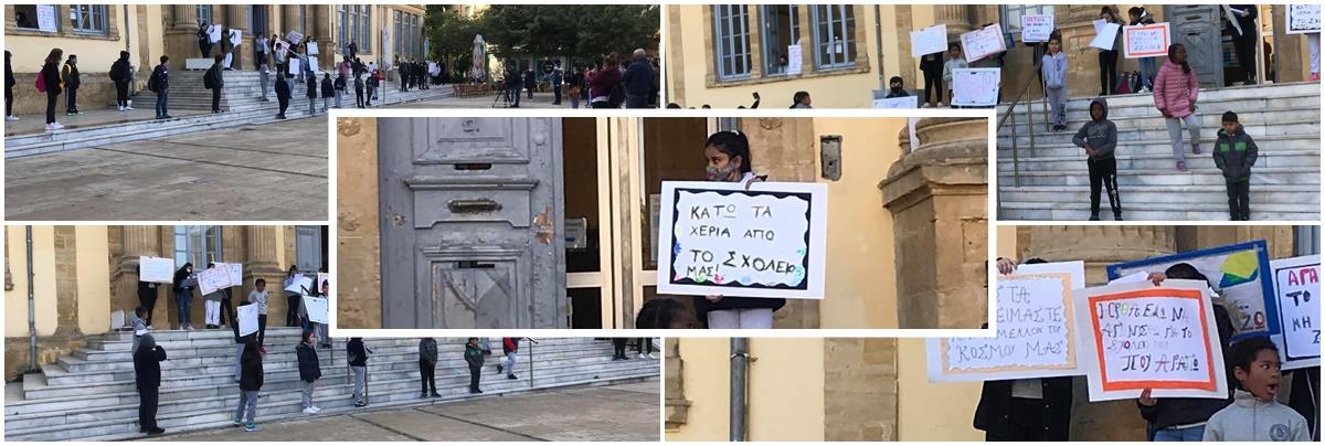 Οι μαθητές κρατώντας πλακάτ, φώναξαν συνθήματα όπως, «κάτω τα χέρια σας από τη Φανερωμένη», στέλνοντας ηχηρά μηνύματα.
