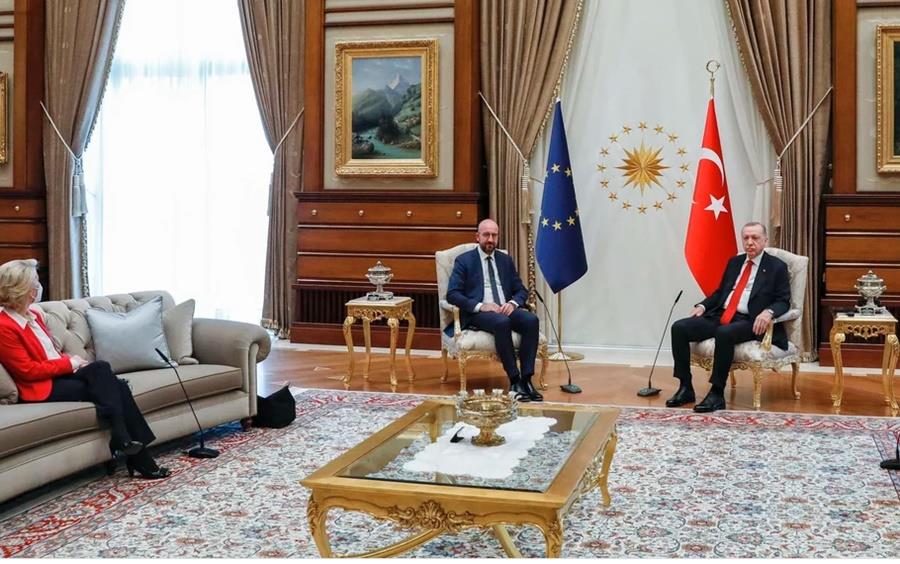 Η προσβολή κατά της προέδρου της Ευρωπαϊκής Επιτροπής Ούρσουλα φον ντερ Λάιεν, που αναγκάσθηκε να καθίσει σε έναν απομακρυσμένο καναπέ, μακριά από τον πρόεδρο του Ευρωπαϊκού Συμβουλίου και τον Ταγίπ Ερντογάν κατά τη συνάντησή τους στην Αγκυρα, έχει προκαλέσει πολεμική στις Βρυξέλλες.