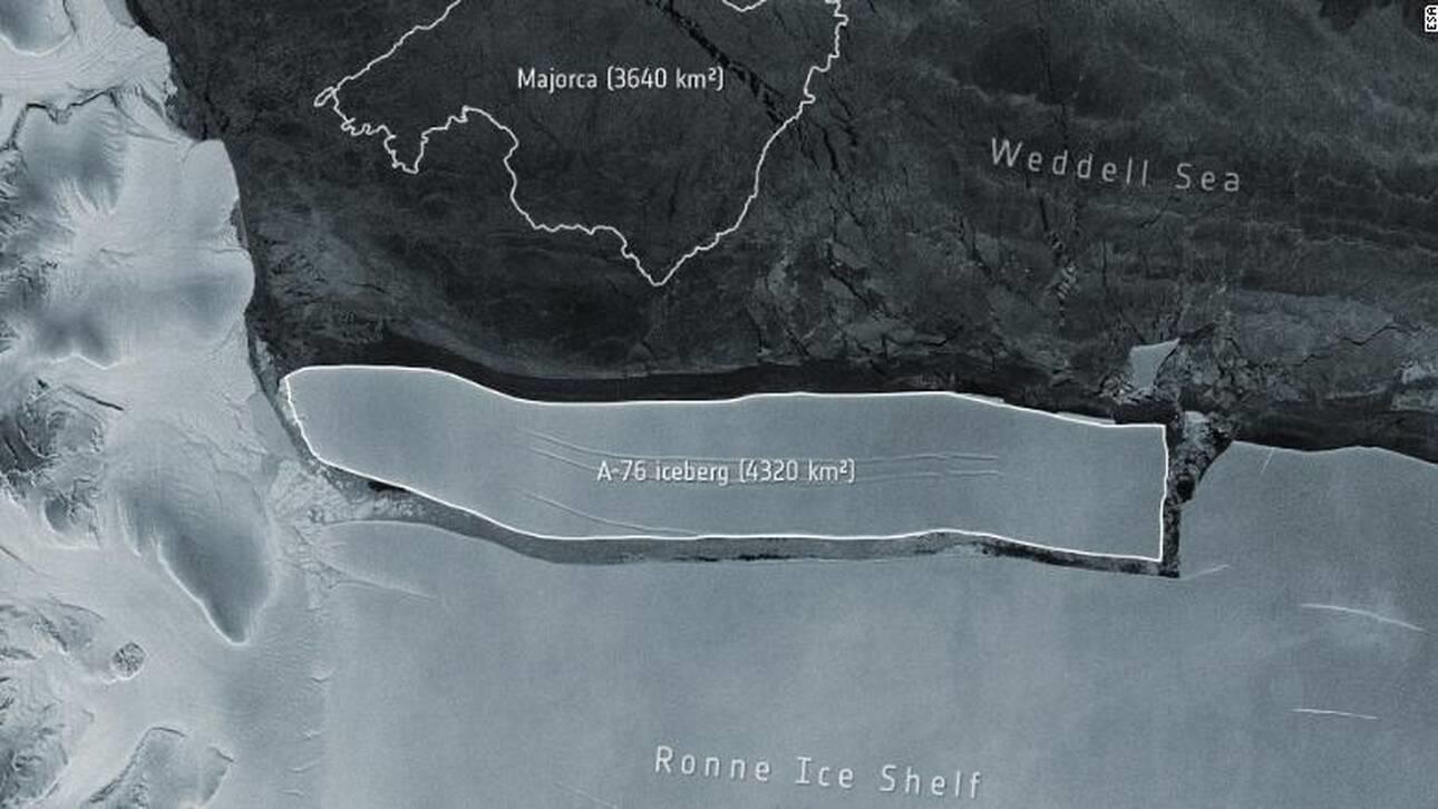 Ένα παγόβουνο στο μέγεθος της μισής Κορσικής, το μεγαλύτερο παγκοσμίως, αποκολλήθηκε από τον παγετώνα Ronne στην Ανταρκτική, σύμφωνα με τις εικόνες που κατέγραψε δορυφόρος του ευρωπαϊκού προγράμματος Κοπέρνικος.
