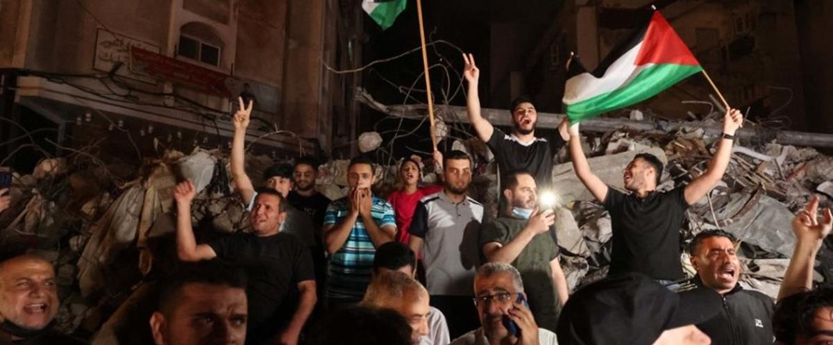 Αρκετοί Παλαιστίνιοι βρήκαν στους δρόμους, ενώ από μεγάφωνα ακούγονταν μηνύματα που χαιρέτιζαν τη «νίκη της αντίστασης επί της κατοχής (σ.σ. του Ισραήλ) στη διάρκεια της μάχης ‘το Ξίφος της Ιερουσαλήμ».