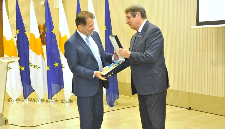 Σε ομιλία του κατά την τελετή, ο Πρόεδρος Αναστασιάδης είπε ότι η Κυπριακή Δημοκρατία ως ελάχιστο δείγμα αναγνώρισης και εκτίμησης της πολύτιμης επιστημονικής, ανθρωπιστικής και κοινωνικής προσφοράς του Καθηγητή Κύπρου Νικολαΐδη, απονέμει σήμερα τον Μεγαλόσταυρο του Τάγματος Μακαρίου Γ΄.