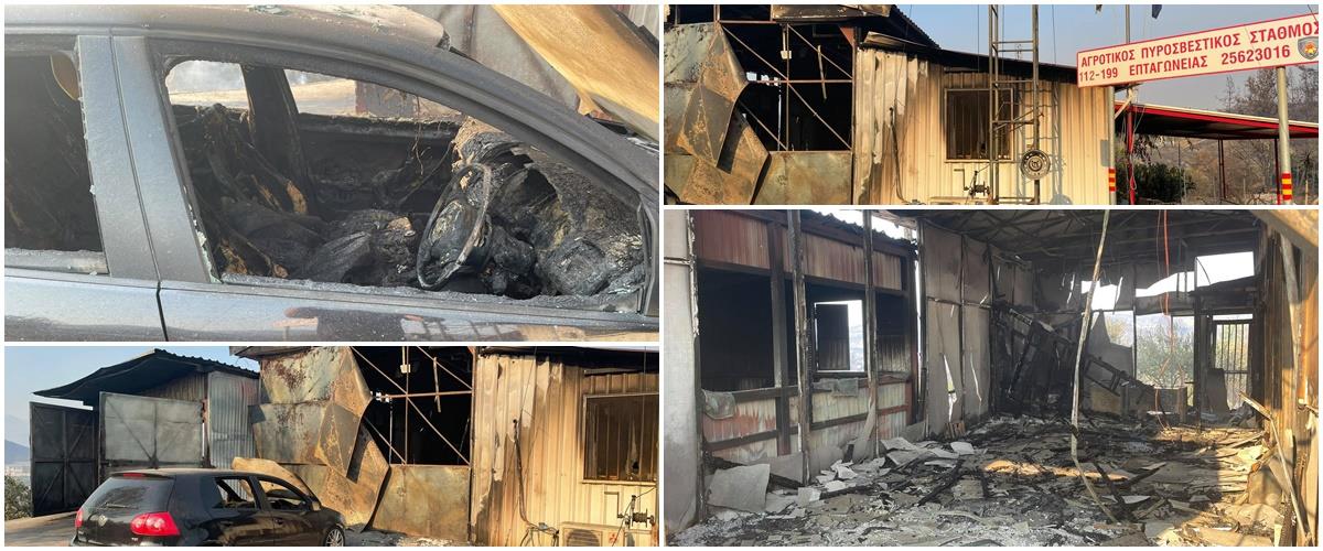 Στα Επταγώνια, στις φλόγες τυλίχθηκε ο πυροσβεστικός σταθμός και οχήματα.