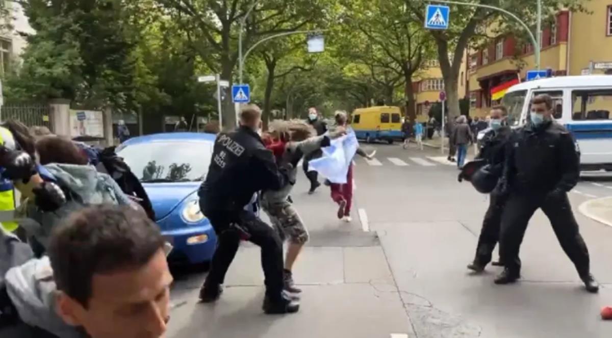 Η αστυνομία ανακοίνωσε πως ορισμένοι διαδηλωτές «παρενόχλησαν και επιτέθηκαν» εναντίον αστυνομικών στη συνοικία Σαρλότενμπουργκ, στο δυτικό τμήμα της γερμανικής πρωτεύουσας.