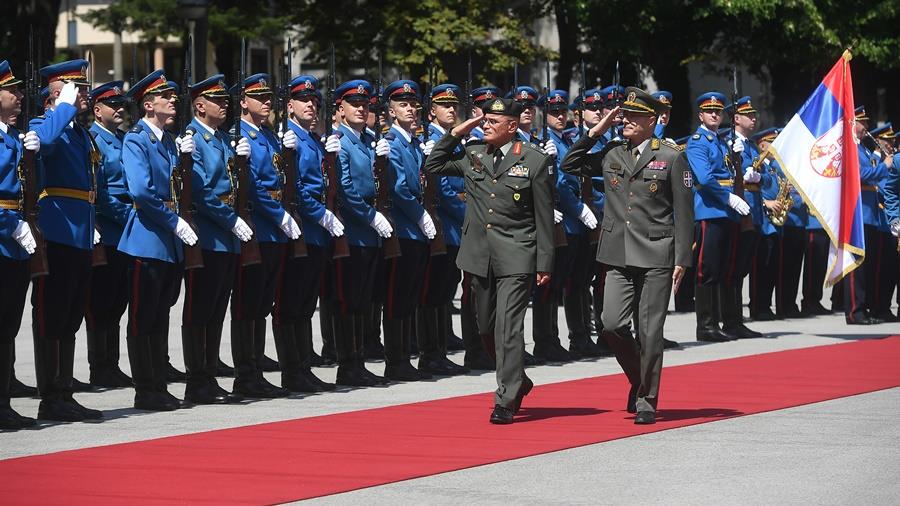 Την πρώτη μέρα της επίσκεψης, ο Αρχηγός της ΕΦ έτυχε επίσημης υποδοχής από τον ομόλογό του, στο Στρατηγείο του Γενικού Επιτελείου Ενόπλων Δυνάμεων της Σερβίας, όπου πραγματοποιήθηκε κατ’ ιδίαν συνάντηση και στη συνέχεια ενημέρωση σχετικά με τις Σερβικές ΕΔ και διμερείς επαφές. Όπως αναφέρεται, κατά τη συνάντηση των δυο Αρχηγών, η οποία έγινε σε εξαιρετικό κλίμα, πέραν της διατύπωσης των παραδοσιακών θέσεων αρχών, αντηλλάγησαν απόψεις σχετικά με τις διεθνείς προκλήσεις ασφαλείας.