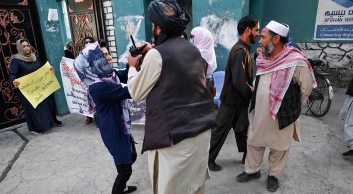 Μια ομάδα έξι νεαρών γυναικών συγκεντρώθηκε έξω από ένα Γυμνάσιο της ανατολικής Καμπούλ για να διεκδικήσει το δικαίωμα των κοριτσιών στην εκπαίδευση αφού όταν οι σκληροπυρηνικοί ισλαμιστές κατέλαβαν την εξουσία απαγόρευσαν στα κορίτσια να πηγαίνουν στο σχολείο.