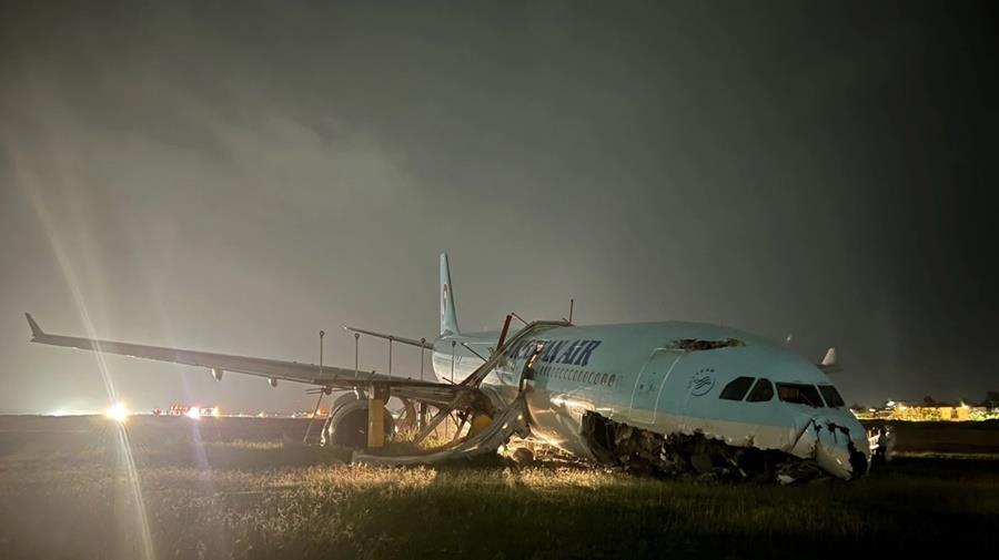 Φωτογραφίες από το σημείο του συμβάντος, που δεν έχουν επιβεβαιωθεί και αναρτήθηκαν στα μέσα κοινωνικής δικτύωσης, δείχνουν ότι το αεροσκάφος έχει υποστεί σοβαρές ζημιές, με το ριναίο σύστημα προσγείωσης ν
