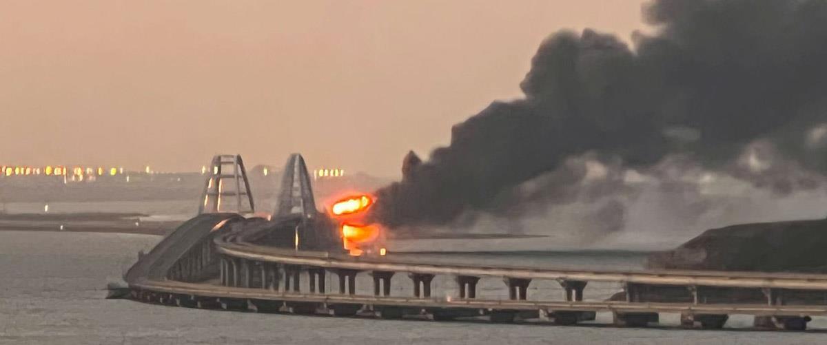 Εικόνες της γέφυρας του Κερτς που αναρτήθηκαν στα μέσα κοινωνικής δικτύωσης φαίνεται να δείχνουν ότι ένα τμήμα του οδοστρώματος της γέφυρας οχημάτων και σιδηροδρόμου είχε πέσει στη θάλασσα. Φλόγες φαίνονταν να καίνε τα σιδηροδρομικά βαγόνια που βρίσκονταν από πάνω.