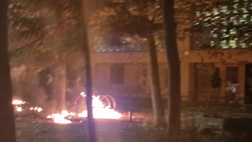 Εκατοντάδες άτομα έσπασαν, παράλληλα, μάρμαρα, ενώ άναψαν και φωτιές σε κάδους απορριμμάτων. Έβγαλαν αντικείμενα, δε, μέσα από το ΑΠΘ και τα έστησαν για οδοφράγματα.