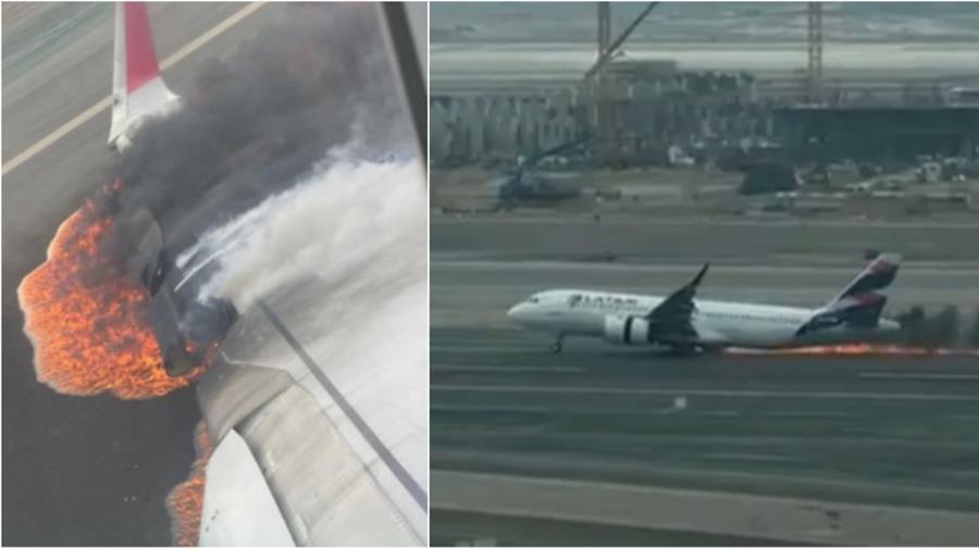 Camiones de LAP se dirigían a pista del aeropuerto Jorge Chávez y una de las unidades COLISIONA con el ala derecha del avión de #Latam que se incendia en el acto. Lima Airport Partners tiene responsabilidad por el accidente y los fallecidos.pic.twitter.com/mtJhttjpVq