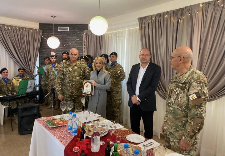 Ο διοικητής του στρατοπέδου πρόσφερε στην Πρόεδρο της Βουλής των Αντιπροσώπων μια εικόνα της Παναγιάς και λουλούδια.