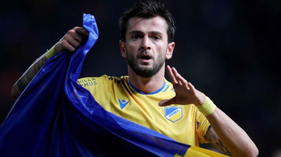 Ακολούθως, ο Γεωργιανός επιθετικός έτρεξε στον πάγκο του ΑΠΟΕΛ και πήρε σημαία της Ουκρανίας αφιερώνοντας το γκολ στο λαό που περνά δύσκολες στιγμές.