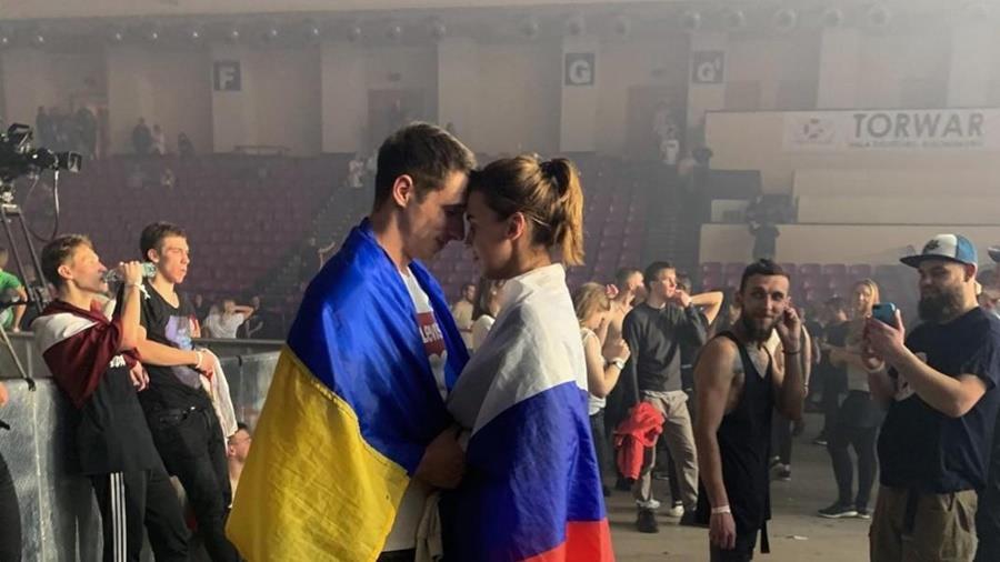 Εκείνος κρατάει την σημαία της Ουκρανίας, εκείνη της Ρωσίας. Η φωτογραφία του άνδρα και της γυναίκας έκανε χθες τον γύρο του διαδικτύου και πολύ πιθανό να την είδες κι εσύ στα social media.