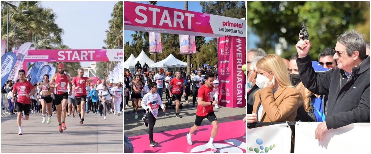 Ο 14ος ΟΠΑΠ Μαραθώνιος Λεμεσού ΓΣΟ επέστρεψε δυναμικά με τη διεξαγωγή του Primetel Εταιρικού Δρόμου 5χλμ. το Σάββατο, 19 Μαρτίου! Η μεγαλύτερη αθλητική διοργάνωση της Κύπρου είναι ξανά εδώ μετά τη διετή απουσία της λόγω της πανδημίας και το πρωί του Σαββάτου υποδέχτηκε και πάλι χιλιάδες δρομείς στον Primetel Εταιρικό Δρόμο 5χλμ.