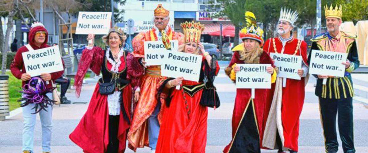Μήνυμα ειρήνης έστειλαν την Κυριακή μέλη της βασιλικής οικογένειας του Καρναβαλιού της Λεμεσού, τα οποία παρέλασαν κατά μήκος του Πολυλειτουργικού Παραθαλάσσιου Πάρκου της Επίχωσης.