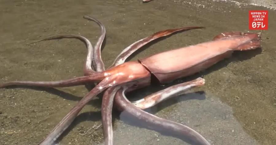 ΒΙΝΤΕΟ: Καλαμάρι 80 κιλών ξεβράστηκε ζωντανό σε ακτή στην Ιαπωνία