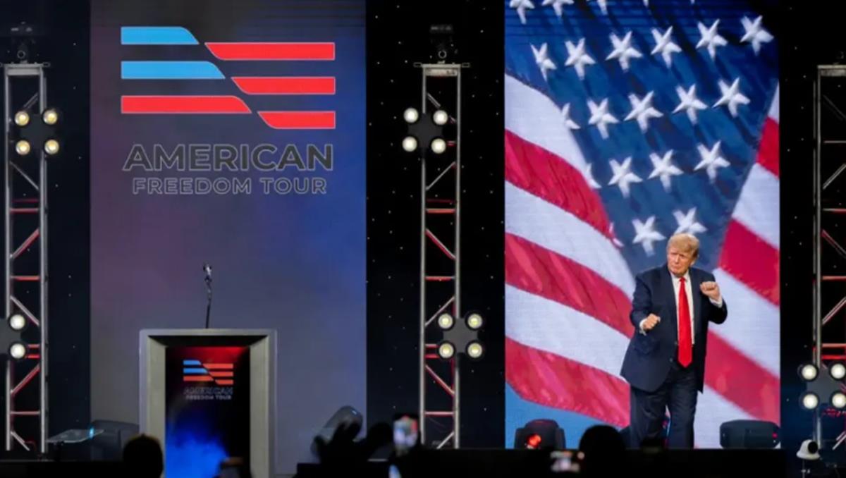 Στο κλείσιμο της ομιλίας του ο Τραμπ έδειξε να απολαμβάνει τις επευφημίες του κοινού με χορευτικές κινήσεις υπό τους ήχους του «Hold On I’m Coming».