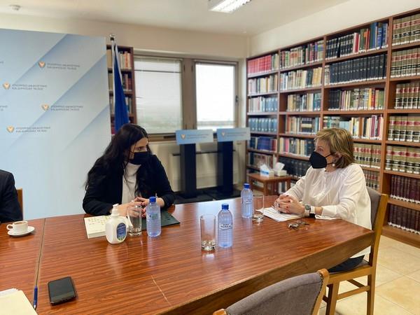Η άριστη συνεργασία, που υπάρχει με την Αστυνομία Κύπρου, για την πάταξη της παράνομης παροχής υπηρεσιών στοιχήματος και τυχερών παιχνιδιών, τονίστηκε κατά την εθιμοτυπική συνάντηση που είχε σήμερα η Υπουργός Δικαιοσύνης και Δημοσίας Τάξεως, Στέφη Δράκου, με την Πρόεδρο της Εθνικής Αρχής Στοιχημάτων, Ιωάννα Φιάκκου.