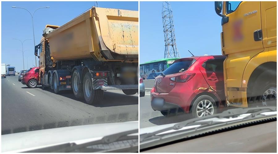 Φορτηγό συγκρούστηκε με όχημα στον αυτοκινητόδρομο (pics)