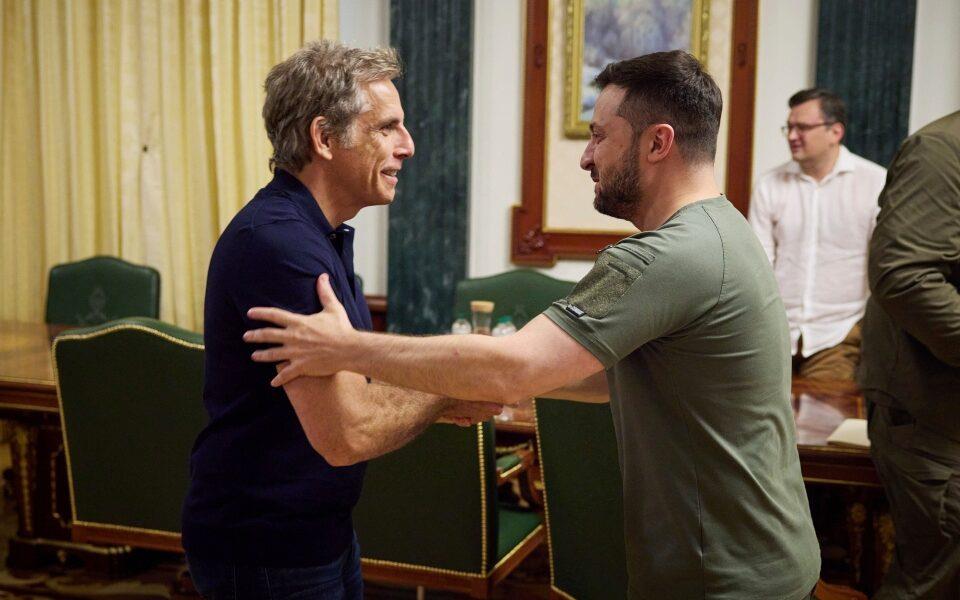 Ο σταρ του Χόλιγουντ Μπεν Στίλερ συνάντησε τον Βολοντίμιρ Ζελένσκι στο Κίεβο τη Δευτέρα και απευθύνθηκε στον κωμικό που έγινε Πρόεδρος ως «ο ήρωάς μου».