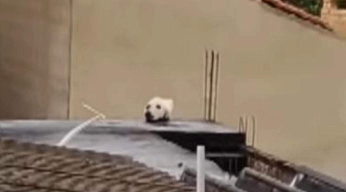 Στο βίντεο με τίτλο «Απροσδόκητο» φαίνεται ένας λευκός σκύλος με σκούρα μύτη και στόμα να βρίσκεται πάνω στην άκρη μιας στέγης.