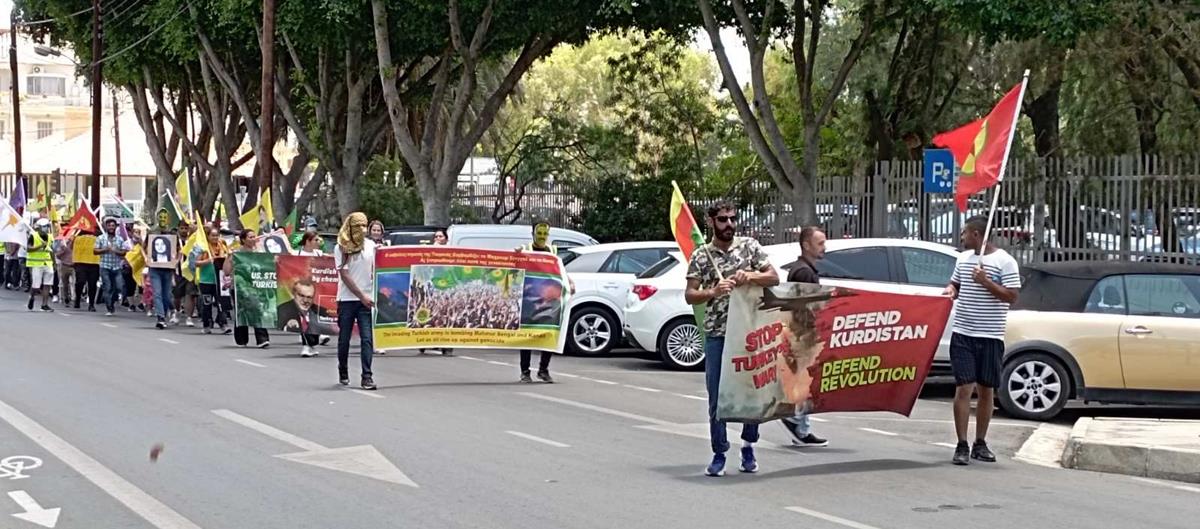 Πορεία διαμαρτυρίας για τις τουρκικές επιθέσεις κατά του Κουρδιστάν και του χαρακτηρισμού του Κουρδικού Εργατικού Κόμματος ΠΚΚ ως τρομοκρατικής οργάνωσης κατά την σύνοδο του ΝΑΤΟ στη Μαδρίτη πραγματοποίησαν μέλη του κουρδικού πολιτιστικού κέντρου «Θεόφιλος» την Πέμπτη στη Λευκωσία.