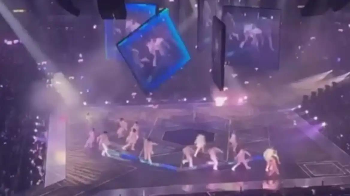 Μία από τις γιγαντοοθόνες κατέρρευσε, τραυματίζοντας σοβαρά έναν χορευτή που βρίσκονταν εκείνη την ώρα στη σκηνή.