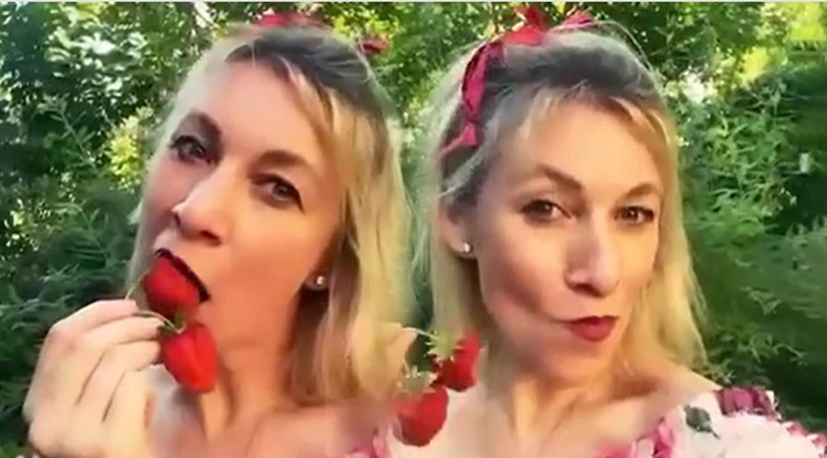 Σε ένα βίντεο διάρκειας περίπου τριών λεπτών, που έχει «ανεβάσει» εν μέσω πολέμου, η Ζαχάροβα φορά ένα φλοράλ φόρεμα και μια κόκκινη κορδέλα στα μαλλιά, δοκιμάζει με «τσαχπινιά» φράουλες, θέλοντας να δείξει πως «ξεκίνησε η σοδειά τους» στη Ρωσία. Την ίδια ώρα, από πίσω της ακούγεται το κλασικό ρωσικό τραγούδι «Kalinka».