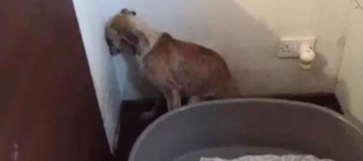 Mόνον η χρόνια κακοποίηση θα μπορούσε να δημιουργήσει τέτοιο τρόμο στην Κάρα, μια σκυλίτσα που δεν τολμάει ούτε να σηκώσει το βλέμμα της από τον τοίχο.