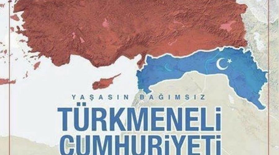 Και, σύμφωνα με τα tourkikanea.gr, προσθέτει: «Ζήτω η ανεξάρτητη Τουρκμενική Δημοκρατία», εννοώντας εδάφη τα οποία η Τουρκία θέλει ν’ αρπάξει από τη Συρία (με μπλε χρώμα στον χάρτη).