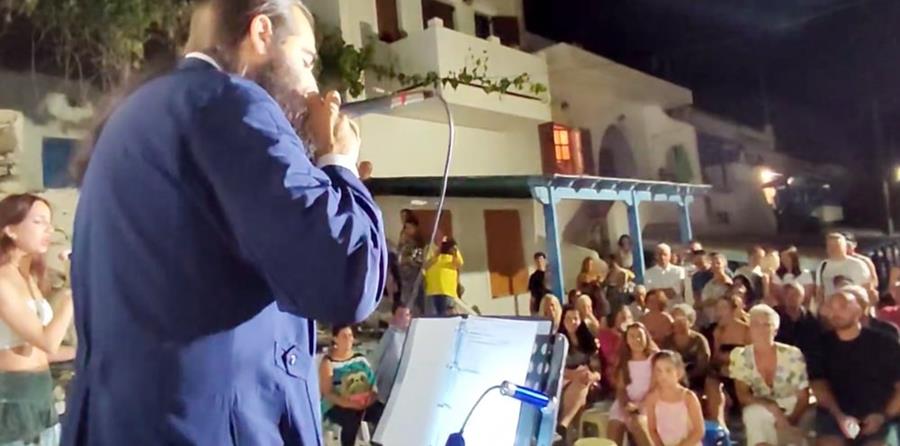 Καταχειροκροτήθηκε ο παπάς του Απόλλωνα Νάξου όταν έπιασε το μικρόφωνο και τραγούδησε σε εκδήλωση που έγινε το Δεκαπενταύγουστο το βράδυ στον μικρό παραλιακό οικισμό της Κορωνίδας.