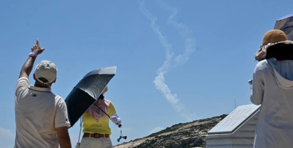Δημοσιογράφοι του Γαλλικού Πρακτορείου στο νησί Πινγκτάν της Κίνας είδαν αρκετά μικρά βλήματα να εκτοξεύονται αφήνοντας πίσω τους γραμμές από λευκό καπνό και άκουσαν δυνατούς κρότους.
