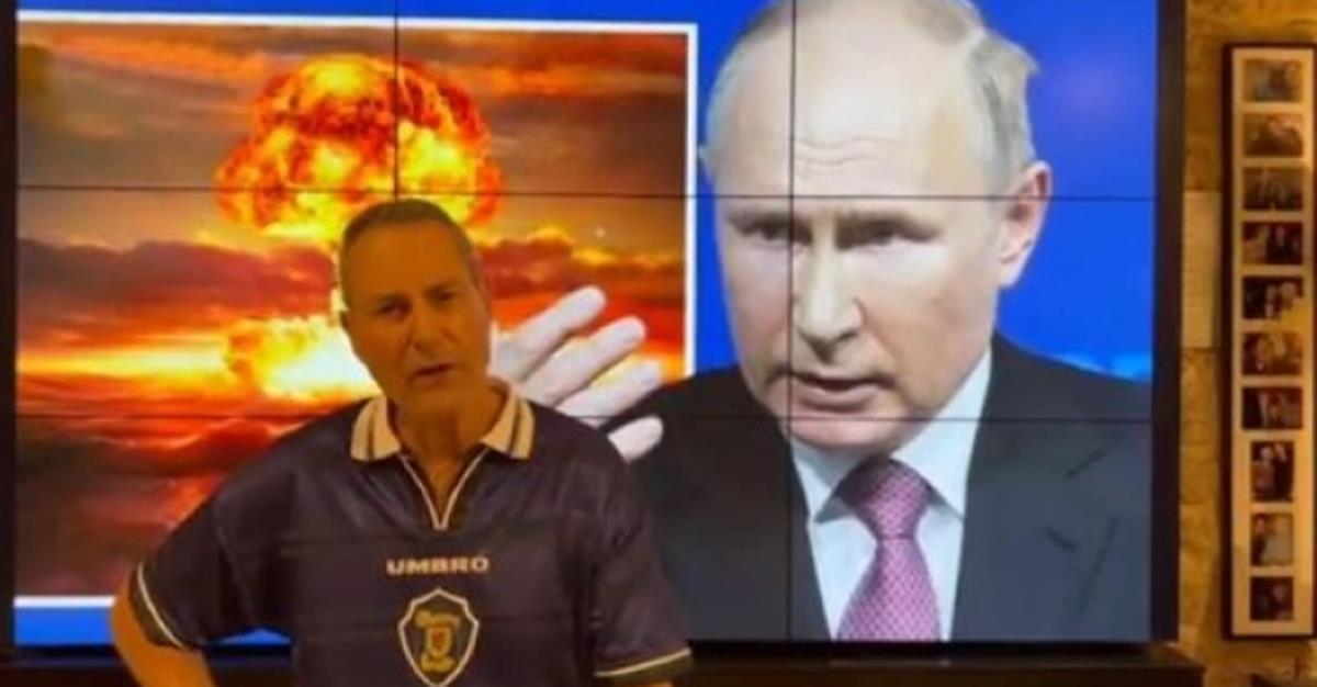 «Έχω μια προειδοποίηση για σένα Πούτιν», ήταν το μήνυμα που έστειλε στον Ρώσο πρόεδρο και ενώ στο βίντεο φαίνεται στο βάθος ο ηγέτης του Κρεμλίνου με ένα σύννεφο πυρηνικής έκρηξης.