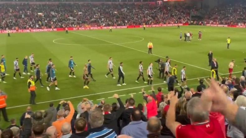 Οι παίκτες της Νιούκαστλ αποχώρησαν από τον αγωνιστικό χώρο του «Άνφιλντ» εν μέσω μαζικών αποδοκιμασιών απ' όλο το γήπεδο, με τον κόσμο της Λίβερπουλ να δείχνει την απέχθειά του για την τακτική των καθυστερήσεων.
