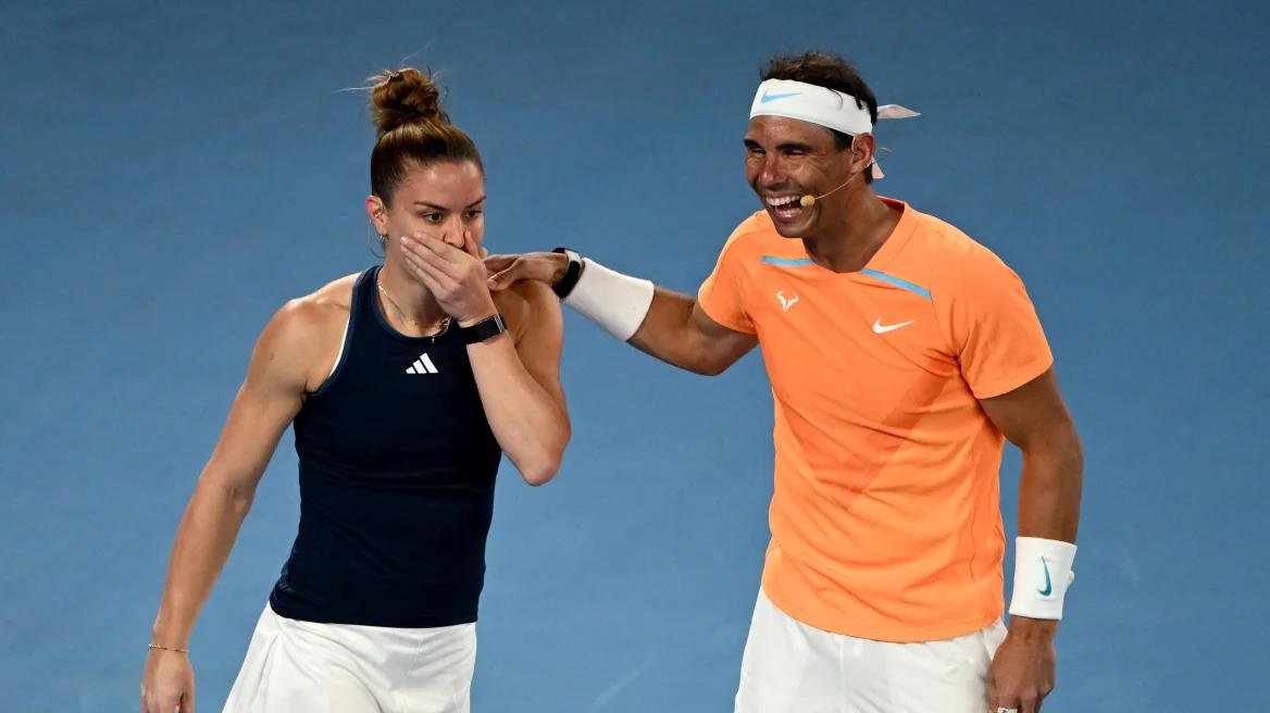 Διαγωνίστηκαν στο ποιος θα στείλει τις περισσότερες μπάλες στις φουσκωτές πισίνες που είχαν τοποθετηθεί μέσα στο κορτ της Rod Laver Arena και η Σάκκαρη κέρδισε τον Ναδάλ.