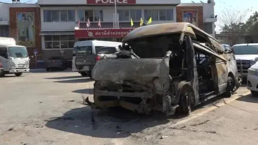 Οι φλόγες εξαπλώθηκαν σε όλο το αυτοκίνητο μέσα σε περίπου τριάντα δευτερόλεπτα, τόνισε μέλος σωστικού συνεργείου που επιχείρησε στο σημείο στη δημόσια ταϊλανδική τηλεόραση.