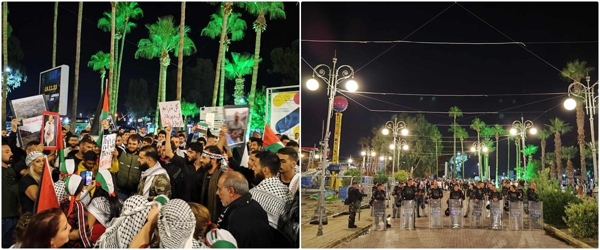 Υπό δρακόντεια μέτρα ασφαλείας και υπό τον κλοιό δεκάδων μελών της Δύναμης, πραγματοποιείται εκδήλωση διαμαρτυρίας από την Ένωση Παλαιστίνιων Γυναικών στο παραλιακό δρόμο των Φοινικούδων στη Λάρνακα.