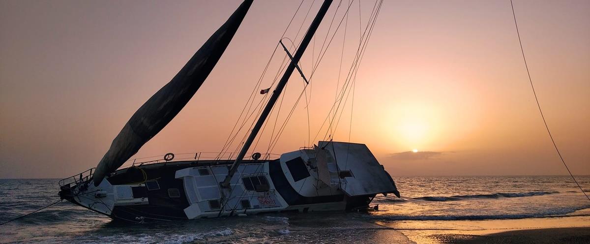 Στην παραλία Θινών στο Βαρθολομιό της Ηλείας, στην Ελλάδα προσάραξε ακυβέρνητο ιστιοφόρο με Ιταλική σημαία.