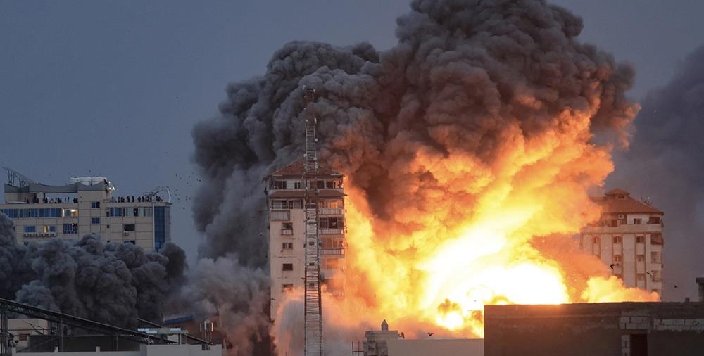 NEW: Residential Palestine Tower in the heart of Gaza City targeted in direct hit by 🇬🇧UK-🇺🇲US-🇪🇺EU-armed missile, live on Al Jazeera.#GazaUnderAttack pic.twitter.com/ITh07pokqZ