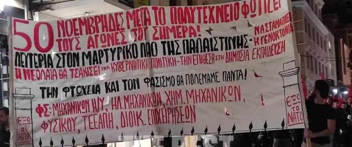 Πορείες πραγματοποιήθηκαν στο κέντρο της Πάτρας για τα 50 χρόνια από την εξέγερση του Πολυτεχνείου.