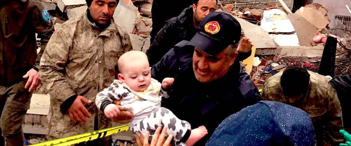 Mάλιστα φωτογραφία που κάνει τον γύρο του διαδικτύου, βρέφος φαίνεται να διασώθηκε μέσα από τα συντρίμμια.