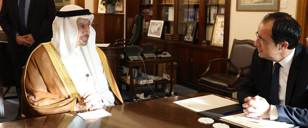 Ο Πρόεδρος της Δημοκρατίας κ. Νίκος Χριστοδουλίδης δέχθηκε σήμερα το απόγευμα, στο Προεδρικό Μέγαρο, τον Υπουργό Επενδύσεων της Σαουδικής Αραβίας κ. Khalid Al-Falih.