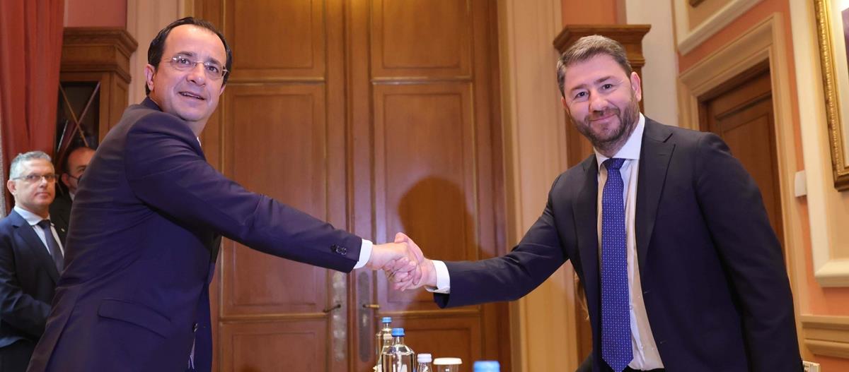 Από την πλευρά του, ο κ. Ανδρουλάκης είπε στον Πρόεδρο Χριστοδουλίδη πως «πιστεύω ότι με την εκλογή σου θα ανοίξει μια νέα προσπάθεια επίλυσης του κυπριακού ζητήματος με σεβασμό στο διεθνές δίκαιο, με σεβασμό στις αποφάσεις του ΟΗΕ. Θα είμαστε στο πλευρό σας, έχουμε χρέος να είμαστε στο πλευρό σας», τόνισε.