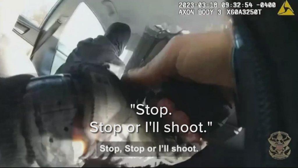 Ένας αστυνομικός μπαίνει στο όχημα, κάθεται πίσω από τον 17χρονο και επιχειρεί να τον συλλάβει. Αυτός τρομάζει και βάζει μπροστά το αυτοκίνητο, ξεκινώντας. Ο αστυνομικός βγάζει το όπλο του και του λέει: «Σταμάτα. Σταμάτα, αλλιώς θα πυροβολήσω».