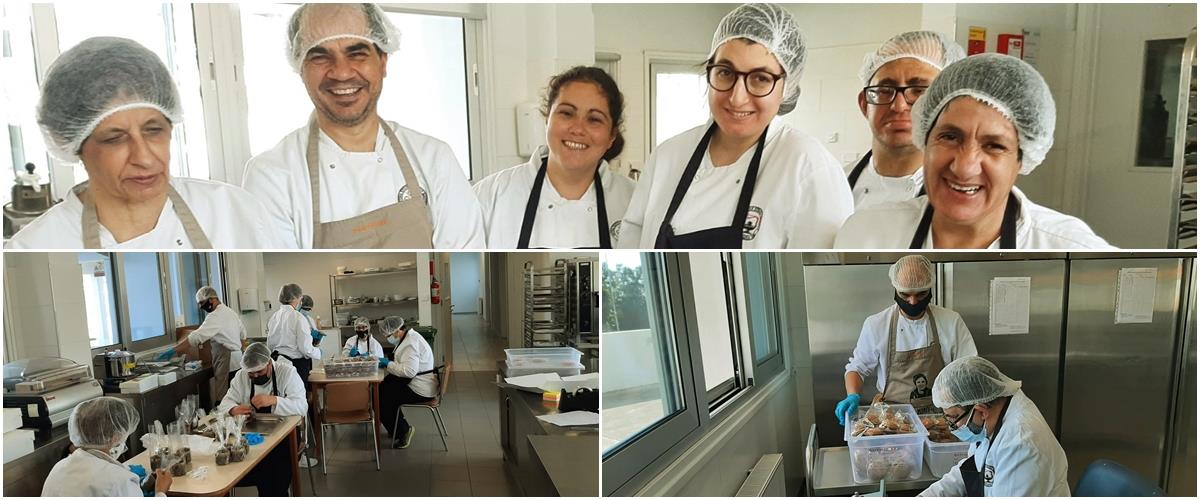 Νέοι ορίζοντες άνοιξαν στα προγράμματα επαγγελματικής αποκατάστασης εκπαιδευομένων του Ίδρύματος με τη δημιουργία του επαγγελματικού εργαστηρίου που στήθηκε στους χώρους του ΙΧΣΙ. Περπατώντας προς τα εκεί, παρέα πάντα με τον κ. Θεοδώρου και την κα Πιτσιλλή, εξηγούν πως χορηγοί και συμπαραστάτες στην όλη προσπάθεια, με την κάλυψη των εξόδων αγοράς του εξοπλισμού, τη διαρκή αρωγή και στήριξη, είναι ο Σύνδεσμος Γονέων και ο Σύνδεσμος Φίλων του Iδρύματος. Το εργαστήριο, Πες το μ’ Ένα Γλυκό, προμηθεύει με τα προϊόντα του το The View Café και εξυπηρετεί πελάτες, μέσω παραγγελιών. Το μελίσσι δεν φοβάται τη δουλειά. Τηρώντας, όπως και η καφετέρια, τους κανόνες ασφάλειας και υγείας που προνοούνται από τη νομοθεσία, αποτελεί μια εντυπωσιακά οργανωμένη ομάδα έτοιμη ακόμα και για τα δυσκολότερα, όπως μια μεγάλη παραγγελία: «Ετοιμάσαμε κεραστικά - καρυδάτα ακόμα και για γάμο των δυόμισι χιλιάδων ατόμων», μας αφήνει άφωνους ο κ. Ηρακλέους, τον οποίο βρήκαμε στο εργαστήριο με το μελίσσι του να φτιάχνουν και πάλι κεραστικά - νουκατίνες αυτή τη φορά - που προορίζονταν για γενέθλια. Στο μεταξύ είχαν φουρνίσει από ώρα κουλούρια, τα οποία είχαμε την εξαιρετική τύχη να δοκιμάσουμε αχνιστά και μοσχομυριστά, κερασμένα με περηφάνια - και όχι άδικα - από την ομάδα. Ήταν από τα έκτακτα προϊόντα που σε τακτά χρονικά διαστήματα προστίθενται στον μόνιμο κατάλογο των ειδών που προσφέρει το εργαστήριο.